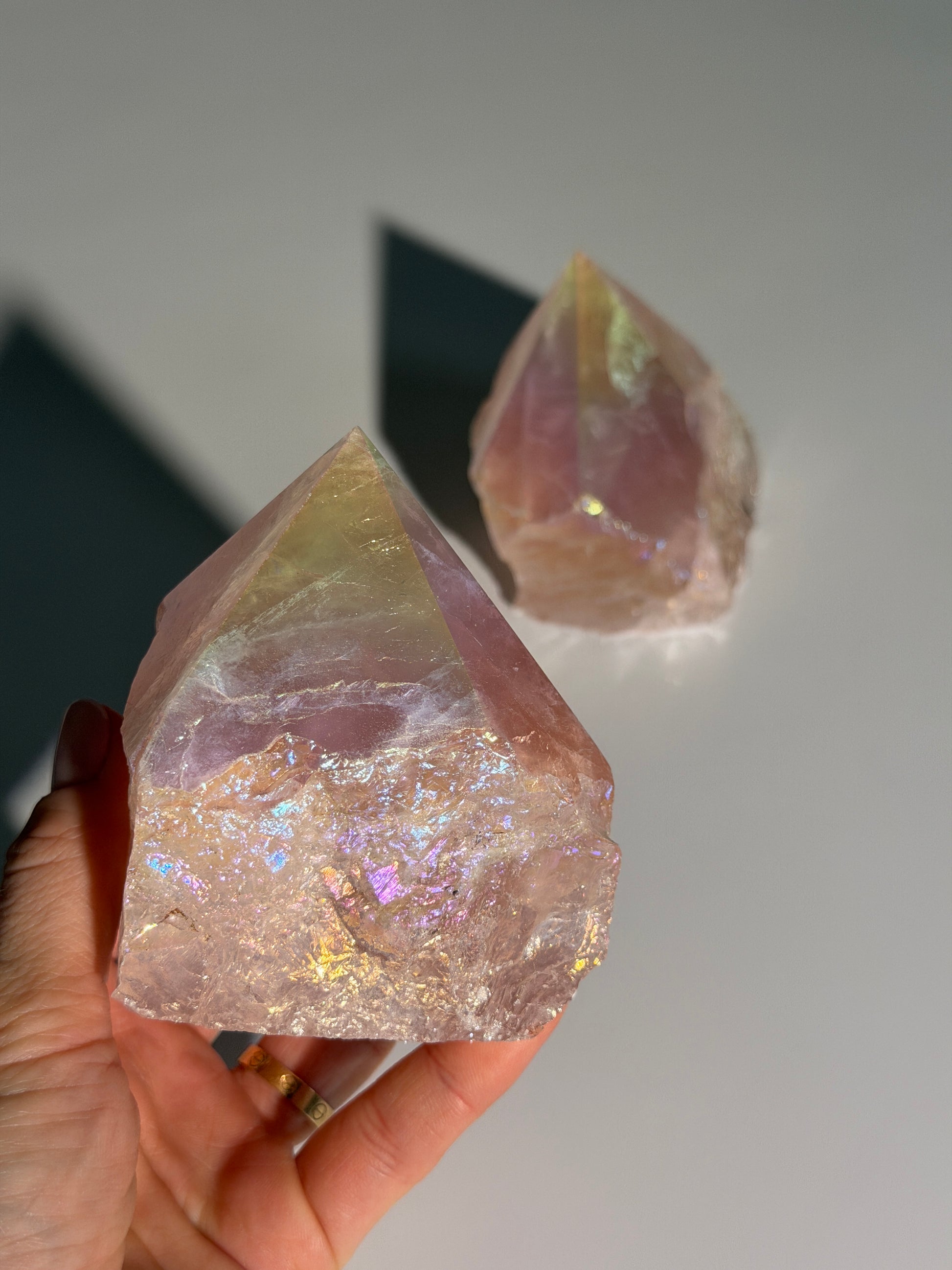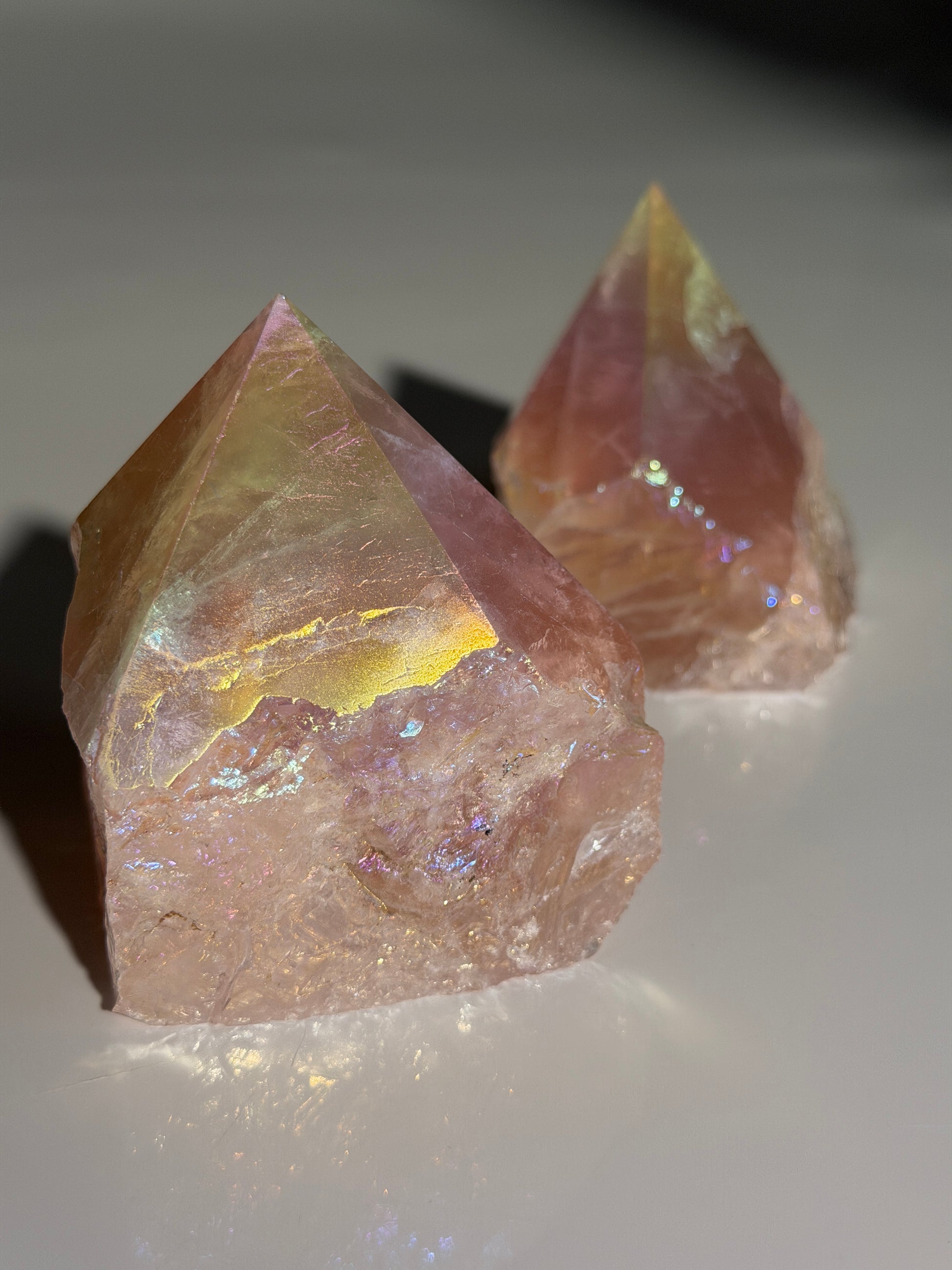 - Natürlicher Rosenquarz mit Angel Aura Beschichtung