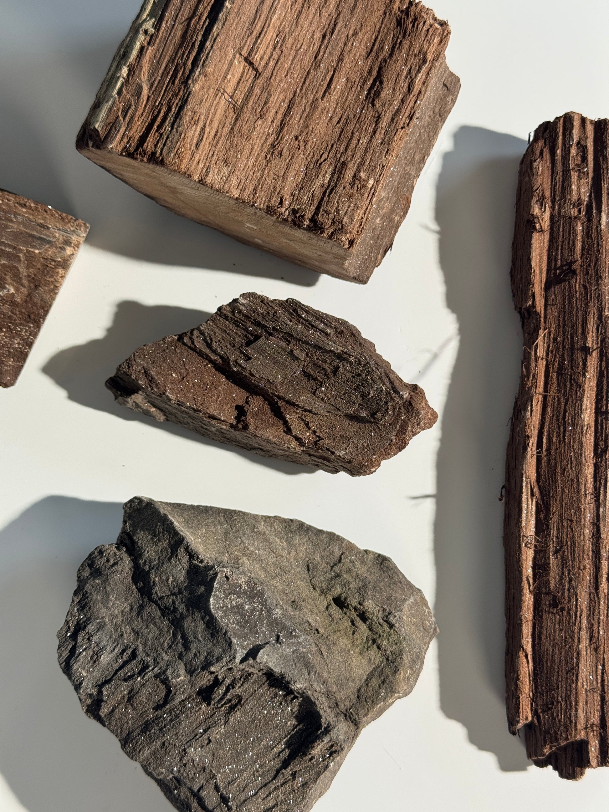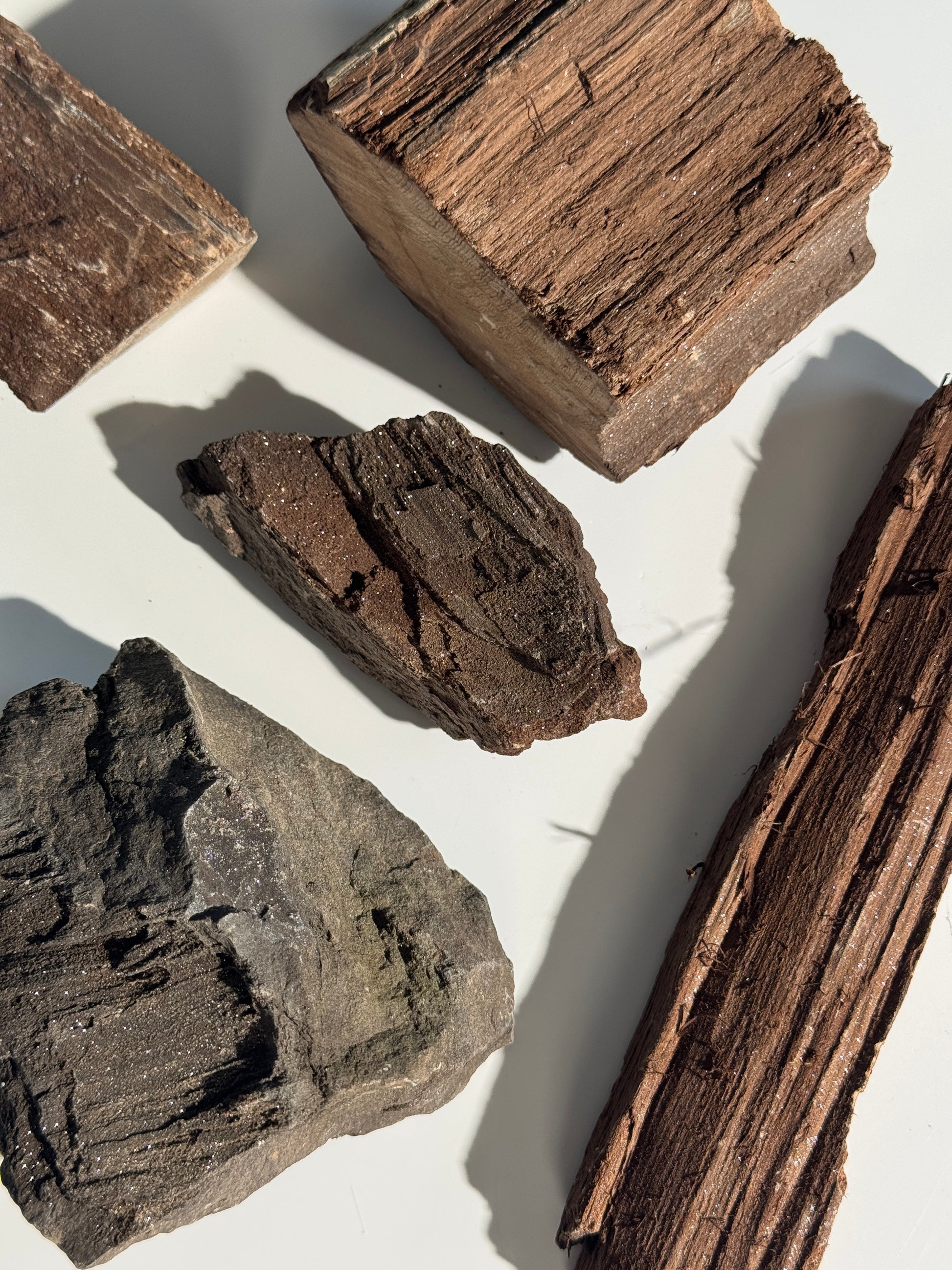 - Natürliches versteinertes Holz mit sanfter Kristallbildung